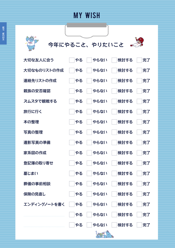 このノートは、そんなカープ愛をきっかけに「これからの自分を見つめる」、新しい終活のはじめの一歩となるエンディングノートです。